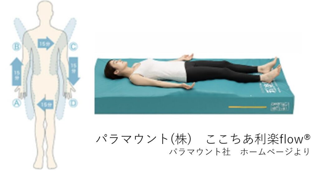 これらのデメリットを解消すべく、エアマットの中にはラグーナ®やここちあ利楽flowのようなスモールチェンジ機能(後述)といって、軽い側臥位にするような機能を有するエアマットもありますが、まだ、褥瘡予防に対する高いレベルで有効とまではいえないのが現状と思われます。