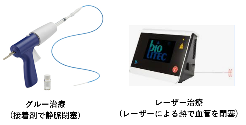 現在は侵襲の強い静脈抜去は減り、血管内治療(レーザーや高周波、接着剤による静脈内閉鎖)を行うことが主流になっています。
